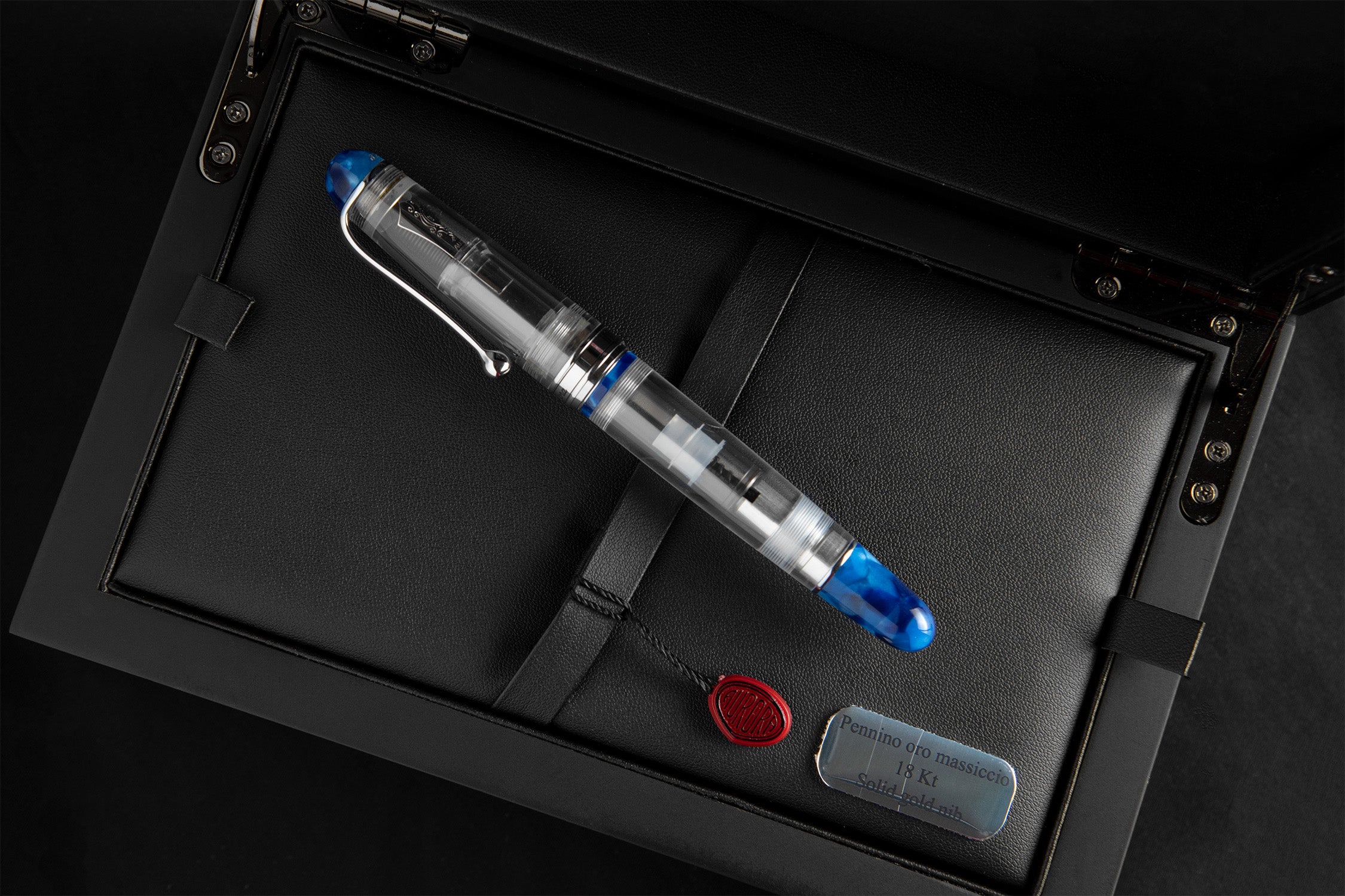 Una versión más de Demonstrator, que con su resina transparente, permite deleitarnos con el funcionamiento de una AURORA decorada con detalles en Azurita y punta de oro macizo de 18 kt.