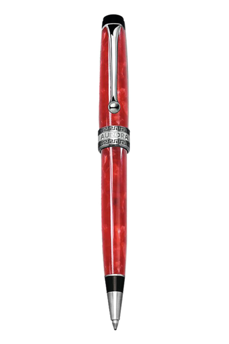 Con la nueva Optima Rossa, Aurora apela a la historica y elegante pluma lanzada en los años treinta: Optima, su perfecta resina Auroloide veteada en rojo brillante contrasta con sus acabados cromados y en la estilográfica, su lujosa punta de Oro de 14Kt. tratado en Rodio con sistema de carga por pistón.