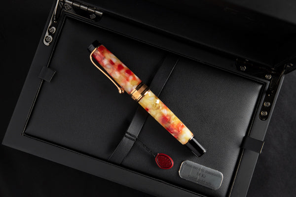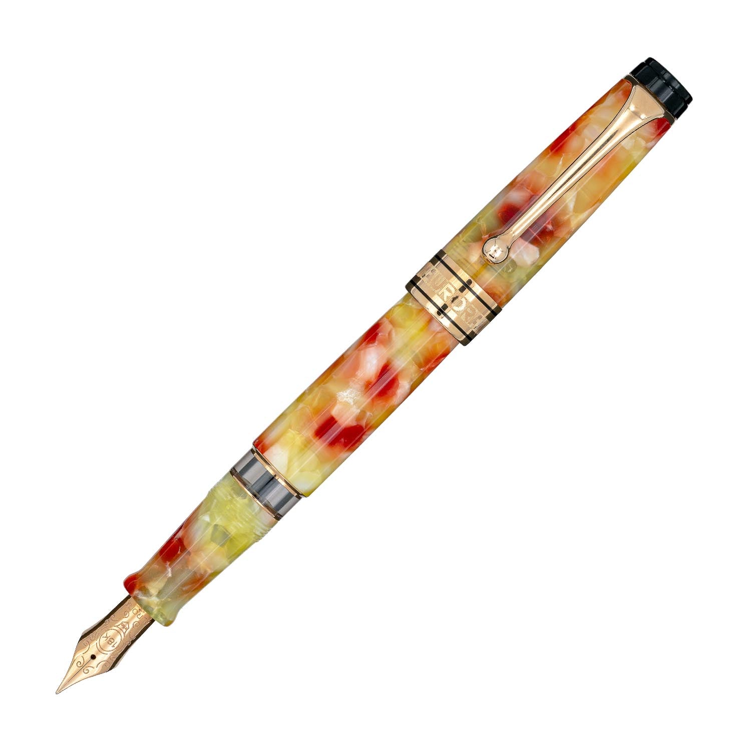 Estilográfica en Auroloide jaspeado amarillo y naranja.