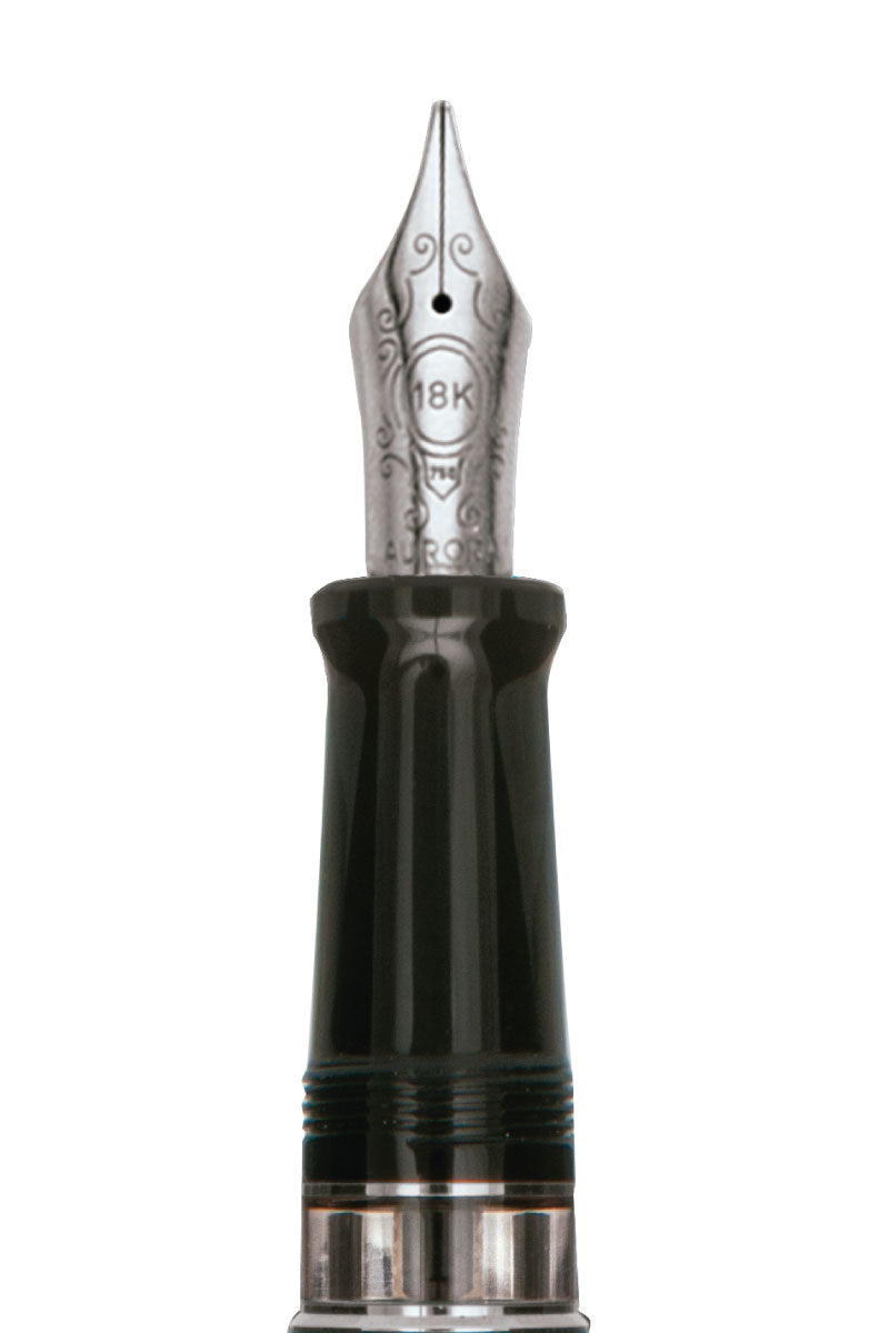 Aurora Decò, combina sus modelos con una brillante resina negra que hace del capuchón el principal protagonista: cuadrícula grabada en guillochè, realizado en tres materiales diferentes: Plata esterlina, oro macizo de 18Kt y oro rosa de 18 Kt.