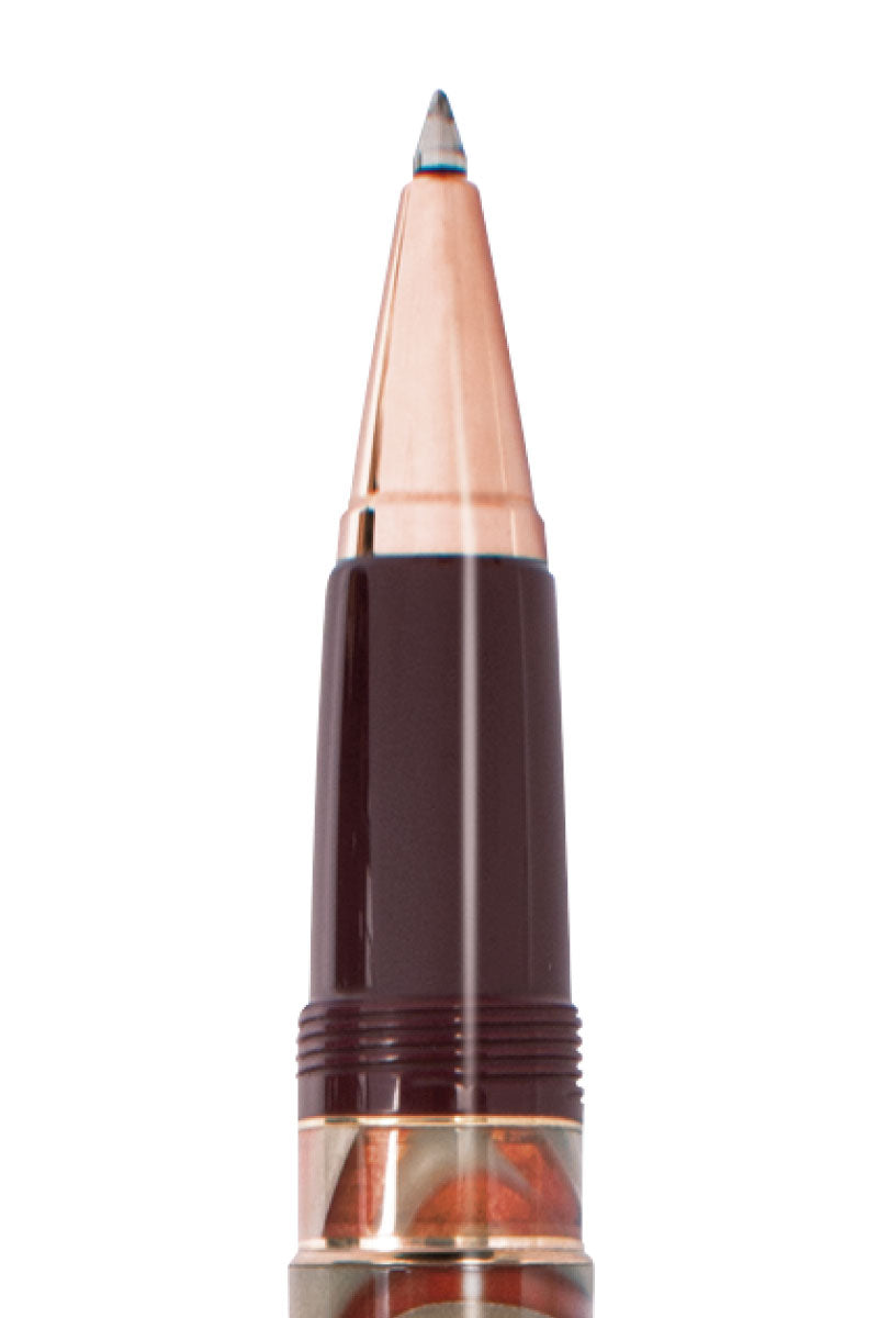 Un sinfín de detalles en las plumas de la bella colección Continentes. Oceanía tiene grabado en el anillo a un famoso marsupial: el canguro. Con una resina combinada en tonos rojizos y grisáceos combinado, sus bellos acabados en oro rosa, componen una extraordinaria pieza.