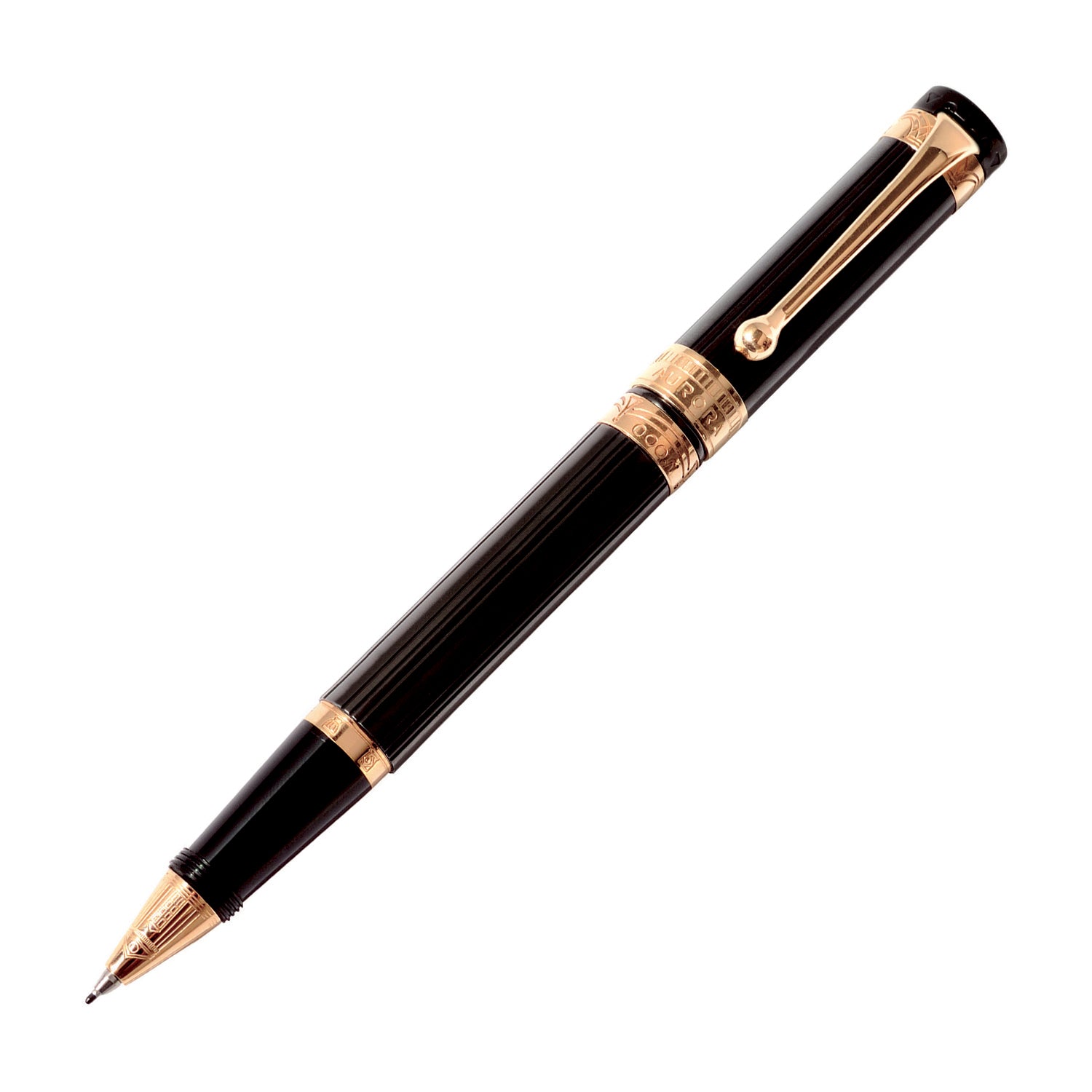 Los anillos y el clip están decorados con los motivos arquitectónicos típicos de las obras de Palladio. Los arcos, bóvedas y escaleras finamente grabados se combinan con el diseño de guilloche en la tapa, mientras que el acabado dorado y lacado negro combina con el diseño aerodinámico del cañón en un juego armonioso de geometrías y colores.