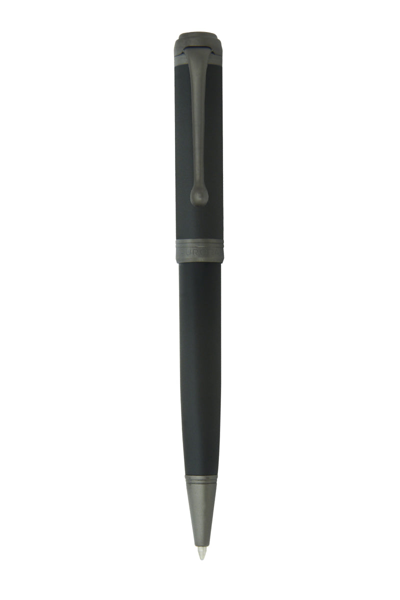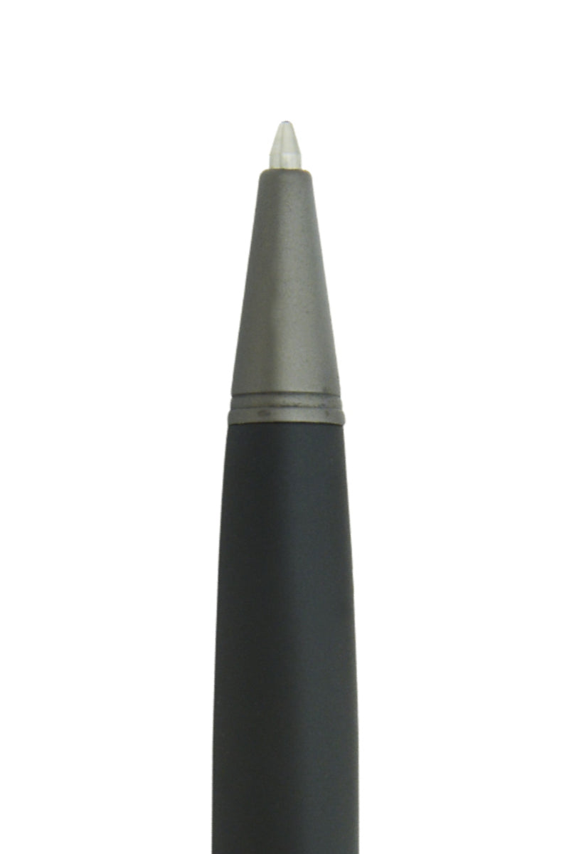 Ballpoint pen con 14kt. punta de oro sólido, rodio negro tratado, tapa en rutenio satinado y cuerpo en resina negra satinada; Adornos de rutenio satinado.