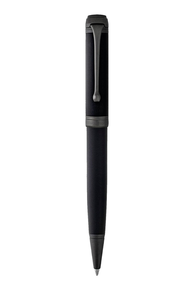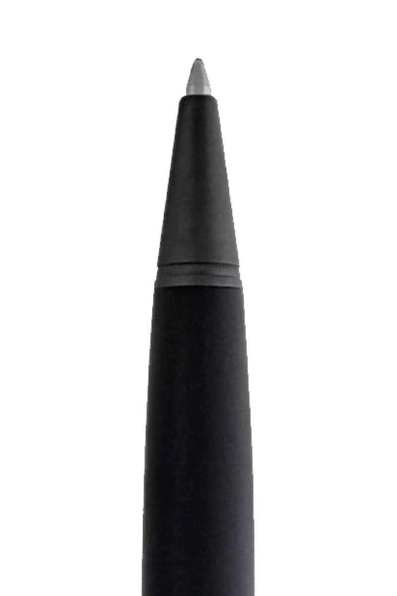 Ballpoint pen con 14kt. punta de oro sólido, rodio negro, tapa y cuerpo en resina negra satinada; Adornos de rutenio satinado.